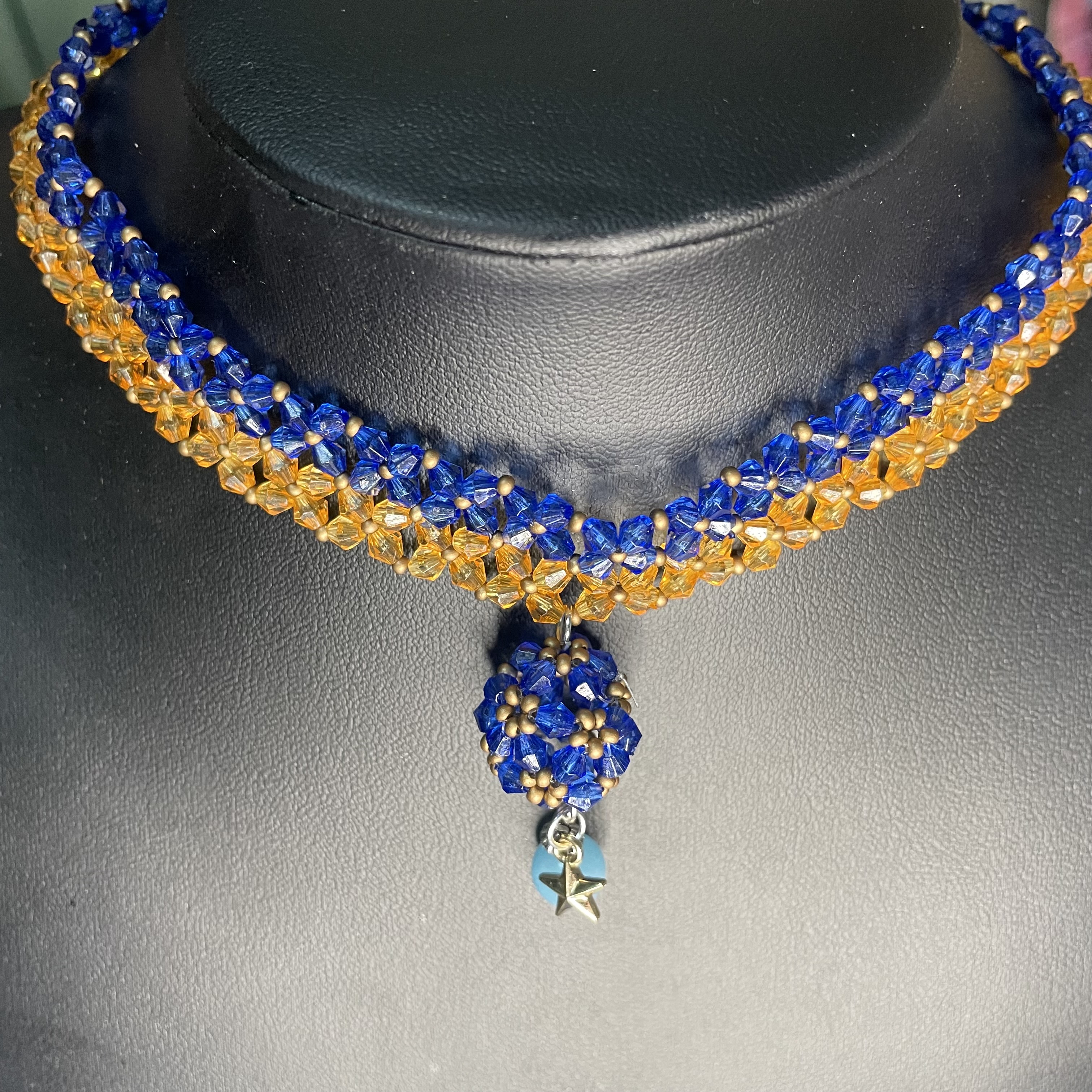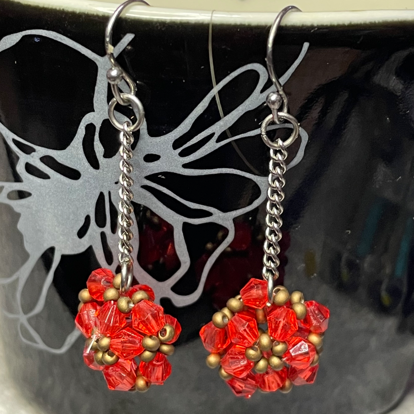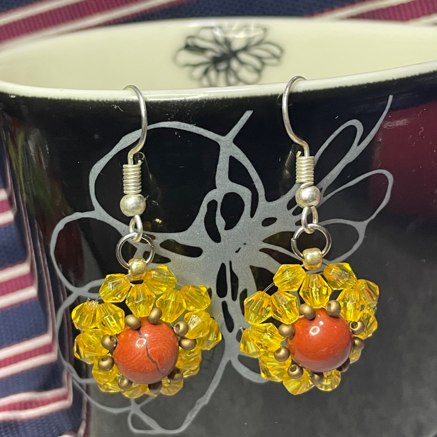 ひまわりは一本糸で編まれたビーズアクセサリーの中でオレンジ基調の開運の天然石アクセサリー。他にはない斬新なデザインとシンプルな作りはつける人の耳元を飾り、