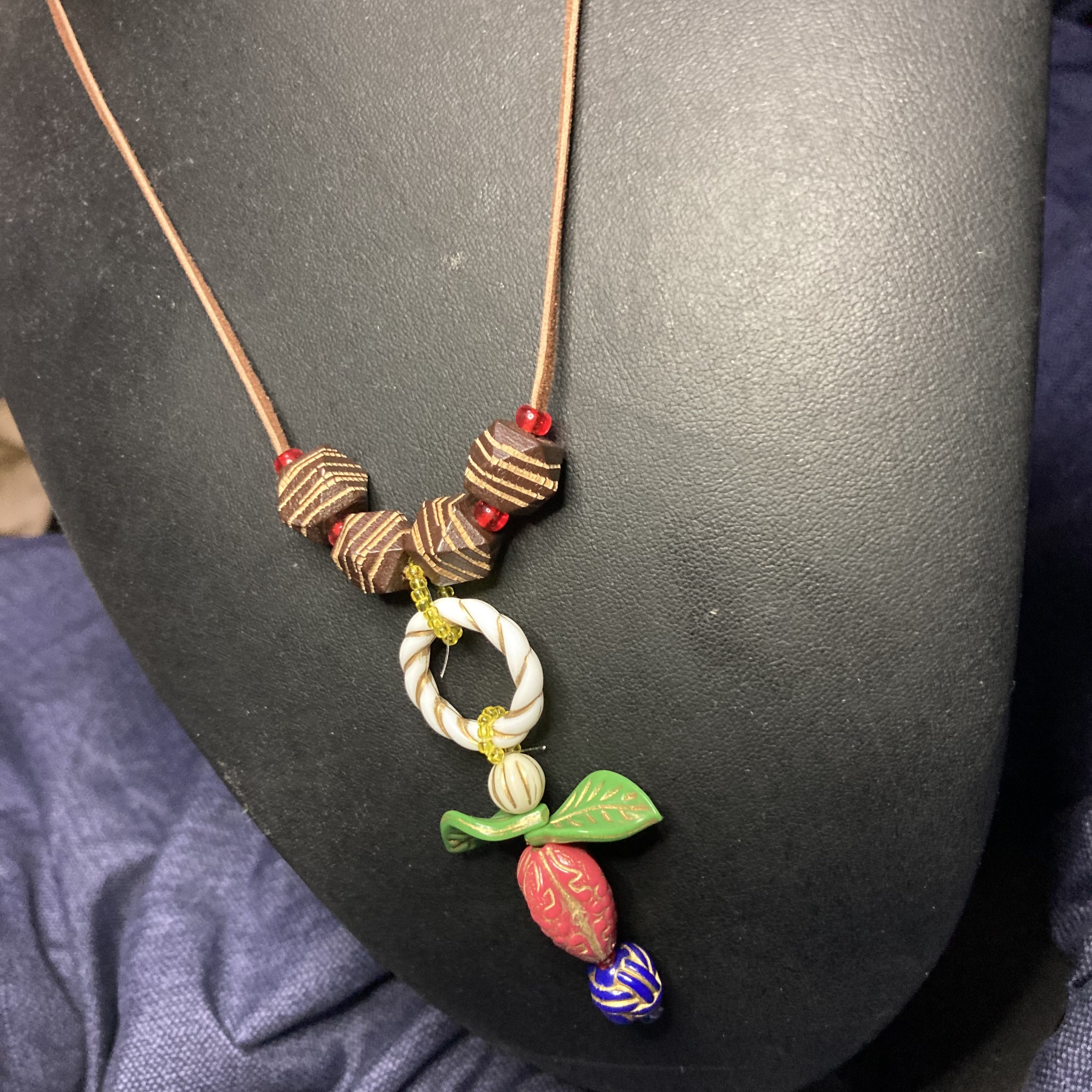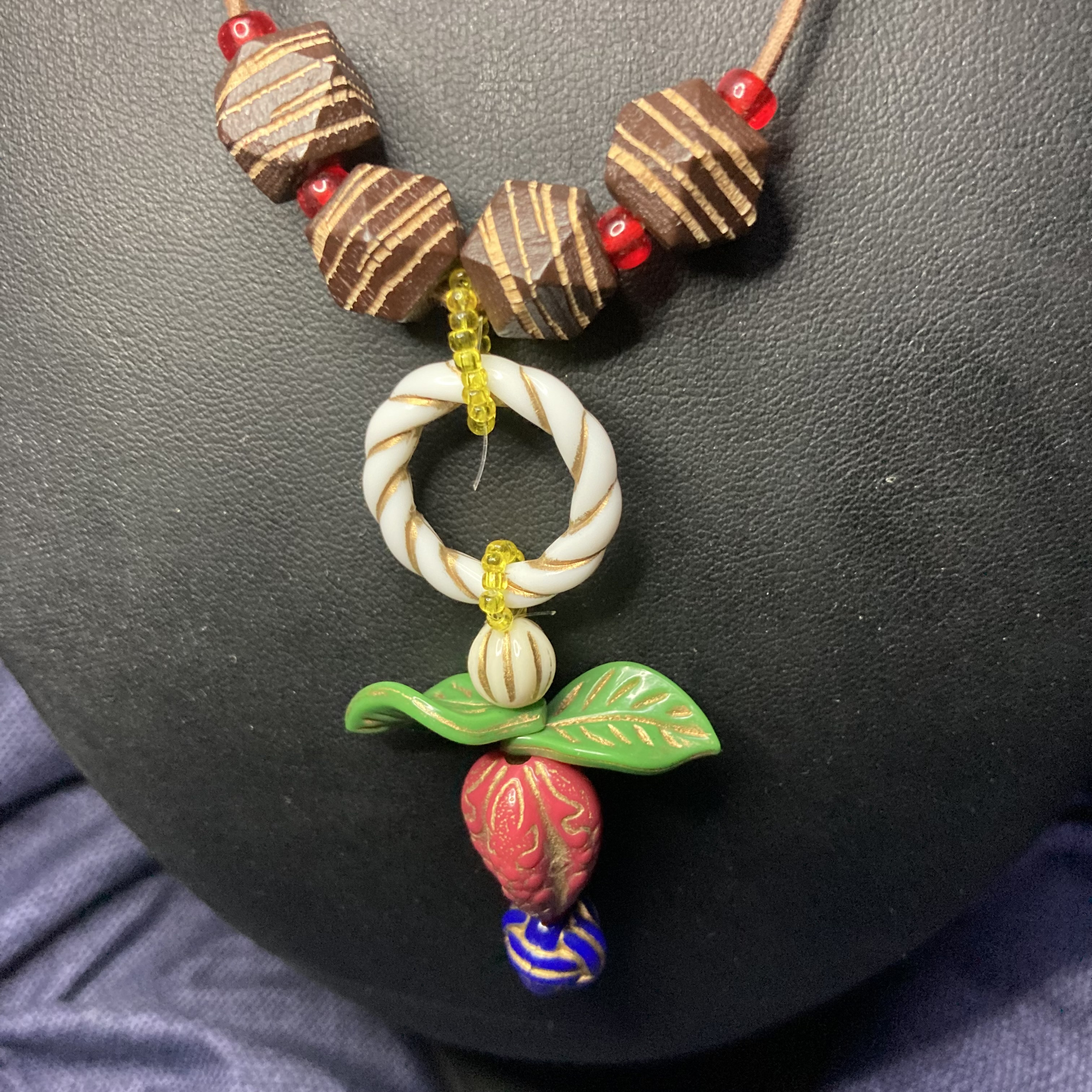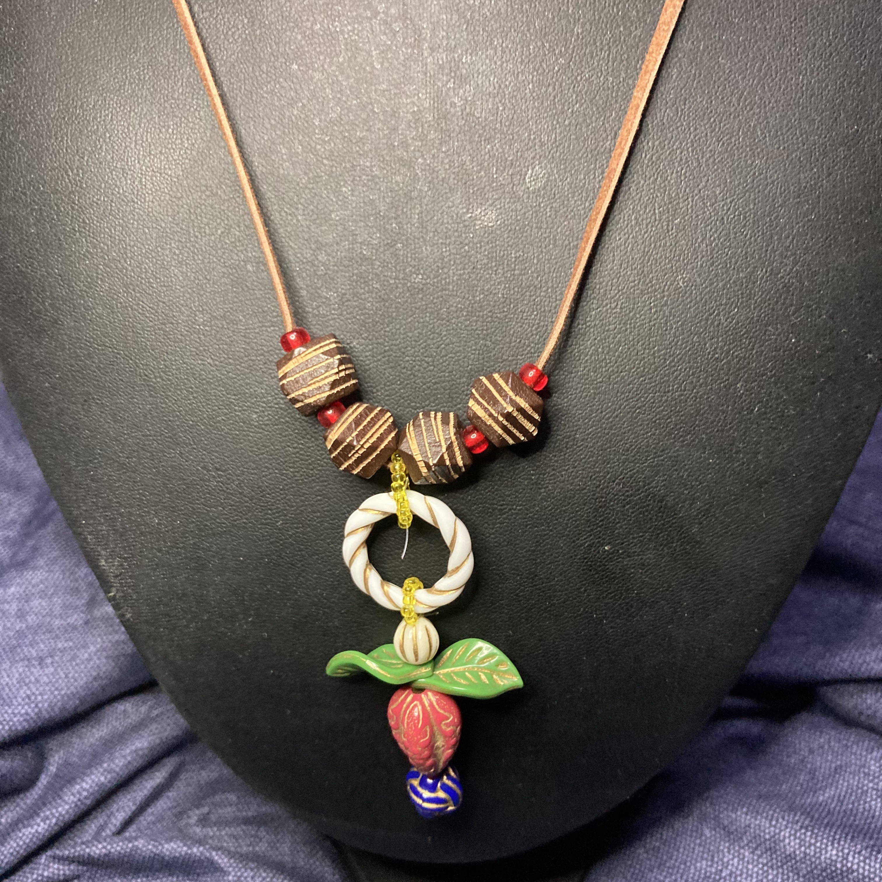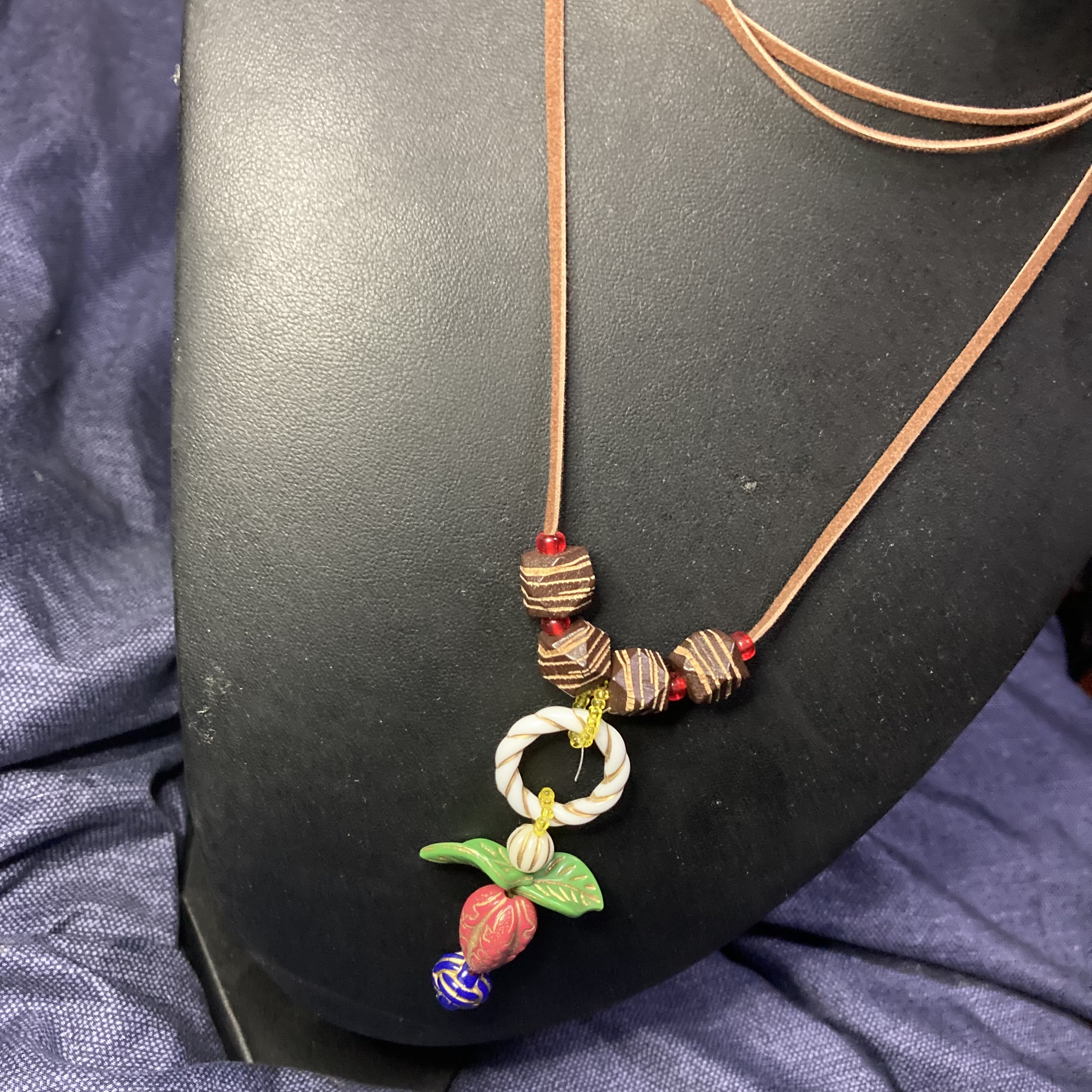 革紐付きのこの商品は、アーティスト黒澤伸介が手掛ける、ペンダント。トレーナーやパーカーなどのアウターの上に出し、長めの紐で首を飾る首飾り。数ある商品の中で綺麗に並んだ秀逸な一品。