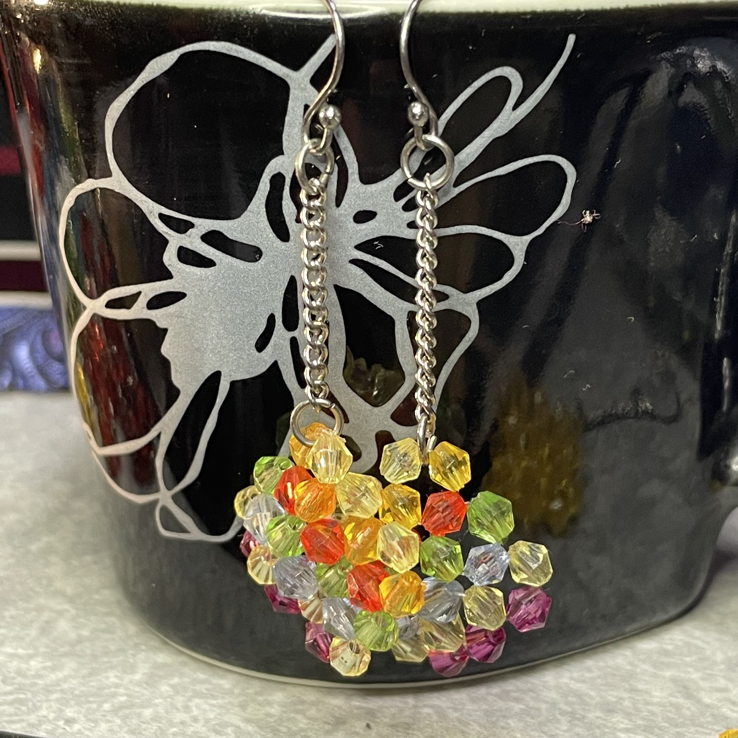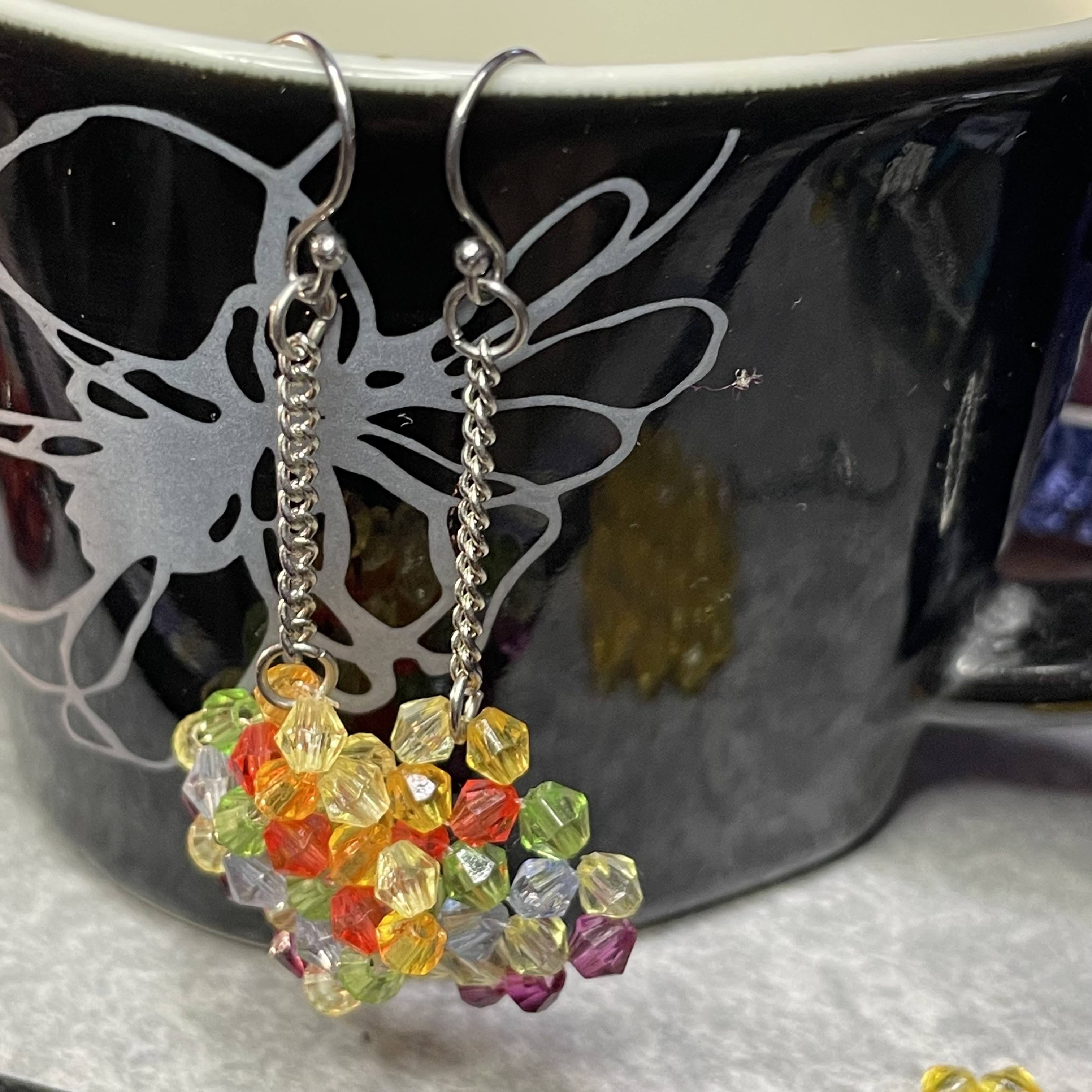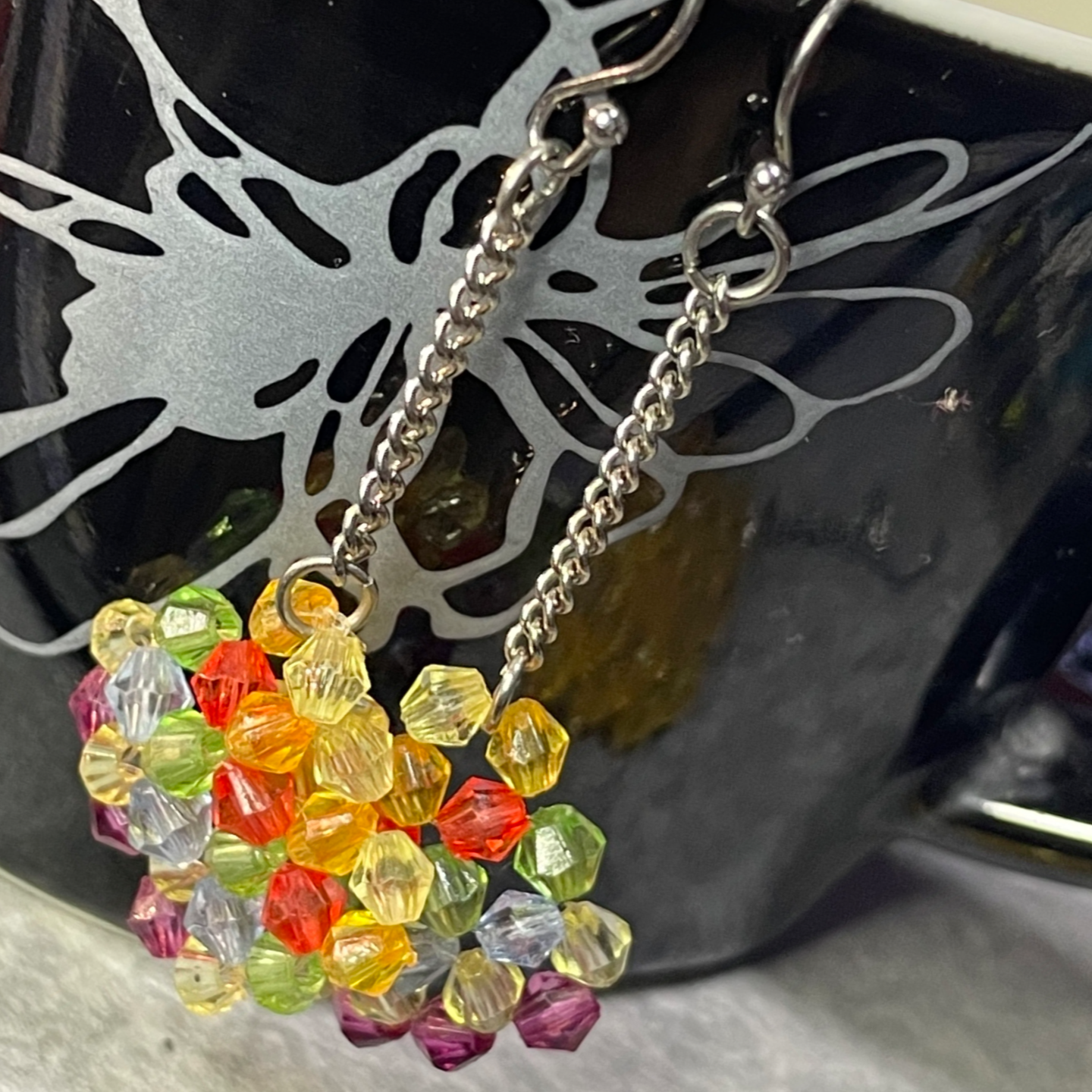 カラフルビーズペアピアス、愛のスクエアは、愛を象徴している菱形をモチーフにゆらゆらゆれる耳飾りとしてのアクセサリーを一身に担い、新しい門出を演出するにふさわしい、また、角を取れば丸くなる性格の特質を表し、原石のような素朴さを表現するアクセサリー。角番のような場面も斬り変えていけるそんな特徴を表す。